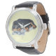 Uhr, Vintage Männeruhr mit schwarzem Lederarmband