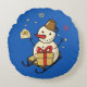 Niedlicher Schneemann auf Schlitten Rundes Kissen