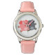 Kinderuhr aus Edelstahl mit rosa Lederarmband