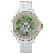 Ein niedlicher, sieben Wochen alter, schwarzer gepunkteter Dalmatiner Welpe, porträtiert in einem blühenden Garten. Das von Katho Menden mit Augen Baby-Hündchen-Foto, diese Kristall-Uhr für Frauen mit Wählscheibe, ist eine bezaubernde Geschenkidee für Hundefreunde. http://www.zazzle.com/kathom_photo Wenn Sie ein Design sehen, das nicht auf Ihrem gewünschten Produkt erhältlich ist, zögern Sie bitte nicht, mich über meinen Shop zu kontaktieren, und ich werde Ihnen gerne das Produkt für Sie erstellen.