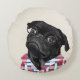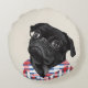 Niedlicher Schwarzer Mops Hund mit Brille und Karo Rundes Kissen