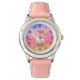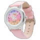 Kinderuhr aus Edelstahl mit rosa Lederarmband