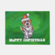Niedlicher St. Bernard in Weihnachtsmannmütze auf Fußmatte