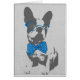 Niedlicher, trendiger, Vintager Tier-Bulldog mit leuchtend blauer Polka Dotbow und Brillen. Schwarz, grau Hundebild, Vintages, antikes altes graues Papierhintergrundstück, Pfau, aquamarin, grau, schwarz, niedlich, lustig, hell, lacht, modern. Hund, Haustier, Welpe, Hunderasse, Tier, Hundeliebhaber. Personalisieren Sie es mit Ihrem Namen Lieblingswort oder Phrase, indem Sie auf die Schaltfläche Anpassen klicken und Text hinzufügen, wählen Sie den Schriftart und die Farbe. Bildausdruck