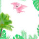 Sie werden dieses Design mit rosa fliegenden Dinosauriern, Blumenelementen und tropischen Blätter aus Aquarellpalmen mit rosa weißen Polka-Punkten Liebe. Mix und Match Collection Stück.