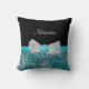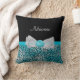 Ein niedliches Türkisblau Cheetahdruck Throwkissen mit einem frilly bloßen weißen Bogen verschönert mit hübschen Perlen und ein Rosetteband in der Mitte. Irgendein girly Mädchen, dem Liebetürkis und -SCHWARZES Liebe ihren Namen haben würden, der diesem Chic und stilvollen Tierdruckentwurf hinzugefügt wurde. Ebenedruckbild, nicht tatsächliches Band.