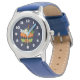Kinderuhr aus Edelstahl mit blauem Lederarmband