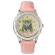 Kinderuhr aus Edelstahl mit rosa Lederarmband