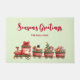 Die Grußtürmatte der Saison mit einem niedlichen und bezaubernden Bild aus Aquarellfarben. Santa fahren einen Zug voll mit Spielzeug für alle Kinder der Welt.