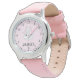 Kinderuhr aus Edelstahl mit rosa Lederarmband