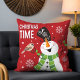 Niedliche Whimsical Snowman Weihnachten Weihnachtszeit Sommerferien Kissen Kissen Cushions zeigt einen niedlichen whimsical Schneemann mit einem Vogel auf der Hand und den Text "Weihnachtszeit" in der modernen Typografie. Ideal für festliche Weihnachtsdekoration und Geschenke für Familie und Freunde. Designed by ©2024 Evco Studio www.zazzle.com/store/evcostudio