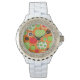 Eine wunderbare Damenuhr mit weißem Armband und grün-weiß-kariertem Ziffernblatt. Trägt sich ganz fabelhaft. Exzellenter Druck, sehr klare Farben. Schönes Design.