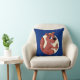 Kissen mit einer Abbildung eines niedlichen roten Eichhörnchens mit Erdnüssen, beigefarbener Kreis auf braunem Hintergrund, süße Tier-Design für Kinder von Maxi Harmony