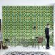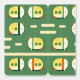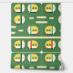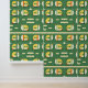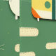 Eine spielerische Abbildung von katzenförmigen Zugfahrzeugen auf grünem Hintergrund. Das skurrile Design verbindet Katzen und Zugelemente in Gelb, Weiß und Orange und schafft so eine unterhaltsame und sonderbare Atmosphäre. Ideal für Kunstliebhaber mit niedlicher, moderner Ästhetik.