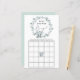 Niedliches, geschlechtsneutrales Baby-Bingo-Duschspiel mit "Baby-Dusche-Bingo" in einfacher Typografie und einem stilvollen Drehbuch mit Herzschlag und einer Aquarellfarbe von pastellfarbenem Minzgrün-Babyelefant in einem Kranz eukalyptusgrün.