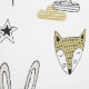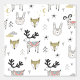 Dieses Folkkunstdesign zeichnet sich durch ein niedliches Doodle-Muster aus, das Füchse, Kaninchen, Würmer und Rentiere umfasst.