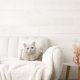 Das ist ein Kissenpolster. Es hat ein niedliches Kätzchen.