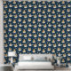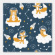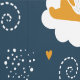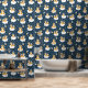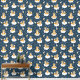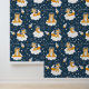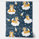 Adorable Muster mit Füchsen, Vögeln und Bären auf dunkelblauem Hintergrund mit weißen und gelben Sternen.