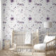 Niedliche Tapete mit violetten Blumen und weißen Bögen. Ideal für Mädchen und Kinderzimmer - Kate Eden Art