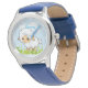 Kinderuhr aus Edelstahl mit blauem Lederarmband