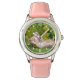 Kinderuhr aus Edelstahl mit rosa Lederarmband