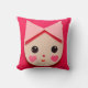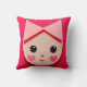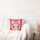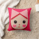Ein niedliches kawaii-artiges Mädchen-Kissen mit einem illustrierten bezaubernden kleinen Mädchen mit Schleife in ihren Haaren und Herzen auf ihren Wangen in hübsch rosa Farben. Es ist ein Geschenk für Freunde, Töchter oder alle, die Sie kennen, werden dieses bezaubernde Mädchen das Gesicht Kissen Design in lustigen rosa Liebe.