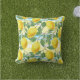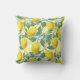 Schönes, zeitgenössisches, türkisblaues Aqua-Blau, gelb und orange Zitronenfrucht-Muster auf gestreiften Aquarellfarben Hintergrund.