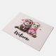 Eine willkommene Tür mit einer niedlichen Abbildung. Ein paar Otter in rosa Kleidung. Stripte Shirts tragen eine Krawatte, die andere eine Schleife. Umgeben von den Herzen der Liebe.