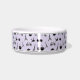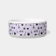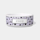 Genießen Sie Ihre süße Ficke mit unserer schicken Pariser gemusterten Schüssel, mit Eiffelturm, Fahrrädern, Rose, Makaronen, Croissants und Kaffeetassen in schwarz auf einem pastellfarbenen Lavendel lila Hintergrund. Personalisieren Sie den Namen Ihres Haustieres in schwarzer Schrift.