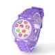 Uhr, Kinderuhr aus Edelstahluhr mit lila Lederarmband