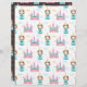 Gemustertes Papier mit einer Prinzessin in einem blauen Kleid, einer Burg und blauen und gelben Wolken. Auf der einen Seite ist der Hintergrund weiß, auf der anderen Seite braun. Sie können den Farbhintergrund ändern, wenn Sie weitere Einstellungen vornehmen. Illustriert und entworfen von Patricia Alvarez.