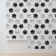 Gemusterte Tapete mit großen und niedlichen Pfotendrucken in Schwarz oder mit schwarzen Konturen auf weißem Hintergrund drucken. Pfosten und Pfosten drucken für Ihr Zuhause-, Zwinger- oder Hundepflastergeschäft. Hundeschema Tapete voller niedlicher Pfotendrucke in schwarz.