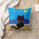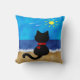 Dieses sonnen sich niedliche Kissen-Ausrüstungsbeschreibungen der schwarzen Katze eine schwarze Katze, die auf einem sandigen Strand aufpasst die Ozeanwellen sitzen und die Vögel, die in den Sommer fliegen!! Eine große jederzeit Geschenkidee für Ihren Lieblingskatzenliebhaber!!