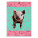 Süßer Tierentwurf. Niedliches kleines Schwein auf einem Türkisblauhintergrund mit rosa (wie Schwein-Schwanz) Wirbel. Jedermann, dem Lieben kleine piggies dieses mögen. Es gibt Raum, dass Sie Text addieren können, wenn Sie auch wollen.