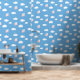 Niedliches Schwein mit Flügeln auf blauem Muster Tapete