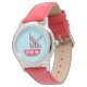Uhr, Kinderuhr aus Edelstahl mit rosa Lederarmband