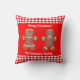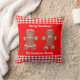 Dieses Ferienkissen verfügt über einen niedlichen Lebkuchenjunge und ein Mädchen mit einer Grenze von rotem und weißem Gingham. Oben ist frohe Weihnachten und unter einem Familiennamen für Sie zu personalisieren. Hintergrund ist rot. Genießen Sie Ihre Urlaubsstimmung!
