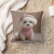 Niedliches weißes Welpe in Pink Sweater & Hat Kissen