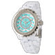 Eine wunderbare Damenuhr mit weißem Armband und grün-weiß-kariertem Ziffernblatt. Trägt sich ganz fabelhaft. Exzellenter Druck, sehr klare Farben. Schönes Design.