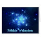 Ein Fraktal, das den Nachthimmel darstellt. Viele Sterne im blauen Raum. Text mit dem Text "Frohliche Weihnachten" erscheint in blau-weiß.