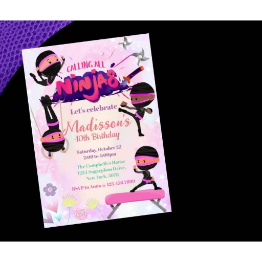 Ninja Birthday Einladung (Vorderseite)Ninja Birthday Einladung (Rückseite)Ninja Birthday Einladung (Stehend Vorderseite)