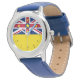 Kinderuhr aus Edelstahl mit blauem Lederarmband