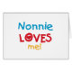 Nonnie Lieben Me T - Shirt, Karten, Aufkleber, Karosserietaschen, und mehr mit farbenfroher Rot-, Gelb- und Blautafel und Herzdesign. Diese Nonnie Lieben mir Bekleidung und Geschenke wird Nonnie Lächeln!