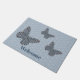 Flügel und Körper eines Monarchen-Schmetterlings sind mit Designs inspiriert, die an Pullover-Mustern in den nordischen Ländern wie Norwegen, Schweden und Finnland sind, mit Motiven wie Schneeflocken, Bergen und immergrünen Bäumen in Weiß, Blau, Grün und Grau mit leuchtend roten Akzenten. Passen Sie den Text auf dieser Türmatte an, um eine personalisierte Dekoration für Ihren Eingang zu schaffen.