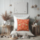 Ein mit einem nordischen Blumenmotiv mit goldenen Blätter geschmücktes, mit Pferden und Satteln geschmücktes Kissen, ein Set vor einem lebendigen, rot-orangefarbenen Hintergrund.