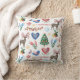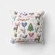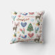 Dieses hübsche Weihnachtskissen ist mit skandinavischen Bildern bedeckt, darunter Rentiere, Musterherzen, Holiday Baum, Blume, Schneeflocken und vieles mehr. Die Farben sind rot, grün, gold, blau und braun. Alles ist auf einem weißen Hintergrund platziert. Einzigartig und festlich! Beide Seiten des Kissens haben das gleiche Design.