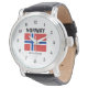Uhr, Vintage Männeruhr mit schwarzem Lederarmband