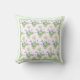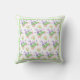 Ein wunderschönes Kissen oder ein Kissen, das mit einem hübschen Muster aus rosa Rosen, cremig weißem Mock Orange Blossom und lila Lavendel mit einem grünen und weißen Rahmen besticht, von einem handbemalten Aquarellbild von Judy Adamson.