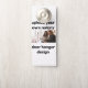 Passen Sie diese einfache Geschäftsvorlage an, indem Sie Ihr eigenes, vorab erworbenes Türhänger-Design hinzufügen, das Sie entweder selbst gemacht haben oder woanders gekauft haben (z.B. Etsy). Nutzen Sie diese maßgeschneiderten Türhänger, um sich neuen Kunden mit einer beruflichen Touch vorzustellen.