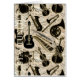 Dieses lustige musikalische Design verfügt über eine Vielzahl von Instrumenten auf Vintager Notenbasis, Collage Hintergrund. Die trendige Schwarz-Gold-Farbpalette ist eine auffällige Grußkarte. Der optionale Text lautet "Bleibe". Die Instrumente sind: akustische und elektrische Gitarre, Saxophon, Klarinette, Posaune, Trompete, französisches Horn, Flöte, Violine, Cello und Schlagzeug. Suchen Sie ID481 um andere Farboptionen und Produkte mit diesem Muster zu sehen.